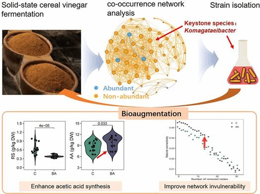 本研究聚焦传统酿造食醋复杂微生物群落中的低丰度非优势种群,系统解析了稀有微生物在发酵过程中保障群落结构稳定和代谢功能的关键作用,加深了对我国传统食品多菌种协同产香发酵工艺所蕴含的科学道理的认知,为基于微生物群落调控的生产工艺优化和产品品质提升提供了一个崭新的视角。