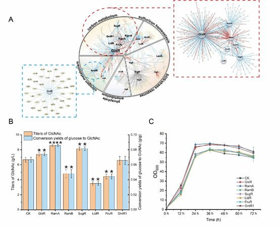 图1 碳代谢转录因子过表达对谷氨酸棒状杆菌GlcNAc生物合成的影响