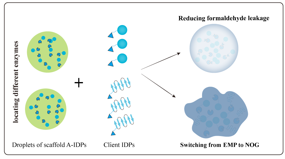该工作在全面了解无膜细胞器形成机制的基础上,设计高效合理的调控工具来调节无膜细胞器的物理特性,使无膜细胞器应用于化学品的合成,为设计高性能工业菌株提供了一种新的策略。