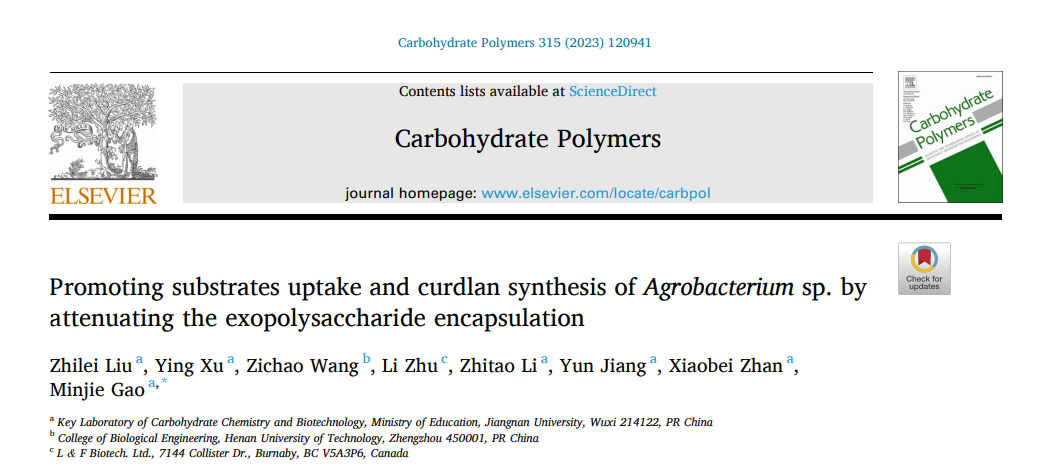 近期,beat365官网beat365中文官网高敏杰教授团队在低分子量热凝胶的高效制备方面取得重要进展,研究成果“Promoting substrates uptake and curdlan synthesis of Agrobacterium sp. by attenuating the exopolysaccharide encapsulation”正式发表于Carbohydrate Polymers (IF =/info/1021/ /11.2) (https://doi.org/10.1016/j.carbpol.2023.120941)。