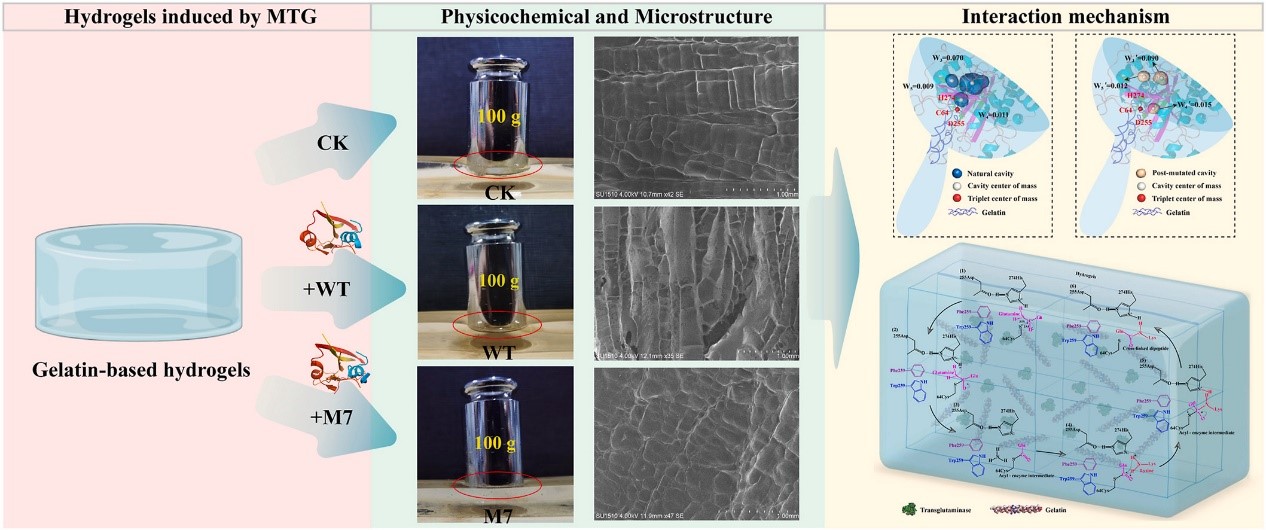 水凝胶是由嵌入水介质中的交联蛋白质分子形成的多孔三维网状结构。在过去的十年中,水凝胶因出色的生物相容性、溶胀性和生物降解性而在生物医学和食品行业中迅速发展。它已被用作开发各种功能材料,包括食品包装、药物输送、伤口敷料化合物、药物和生物医学植入物的开发。然而,食品工业中MTG的添加受到限制,导致食品加工不充分和经济损失。因此,开发具高活性的MTG并探究相互作用机制具有重要意义。