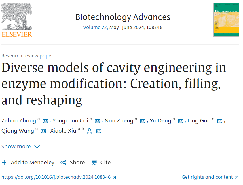 近期,beat365官网beat365中文官网夏小乐教授团队对酶改造过程中空腔工程化的几种模式进行了全面讨论,相关综述文章“Diverse models of cavity engineering in enzyme modification: Creation, filling, and reshaping”正式发表于Biotechnology Advances(一区TOP期刊,IF=16.0)。(https://doi.org/10.1016/j.biotechadv.2024.108346)