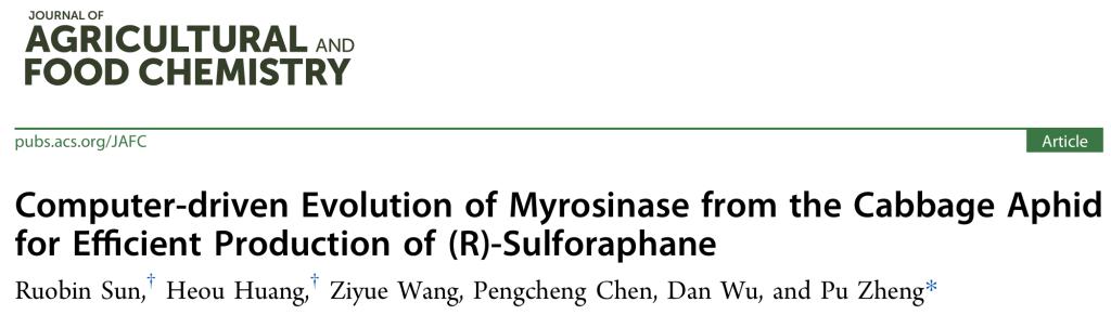 近期,beat365官网beat365中文官网郑璞教授团队在计算机驱动甘蓝蚜虫黑芥子酶的进化以高效生产(R)-萝卜硫素方面取得进展,研究成果“Computer-driven Evolution of Myrosinase from the Cabbage Aphid for Efficient Production of (R)-Sulforaphane”发表于Journal of Agricultural and Food Chemistry期刊(一区、Top期刊,IF=6.1)(https://doi.org/10.1021/acs.jafc.4c02064)。