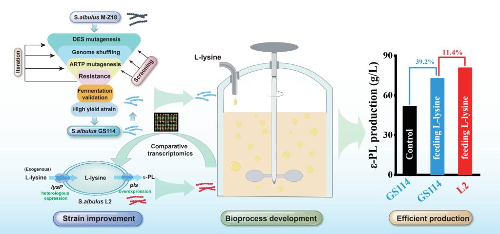近期,beat365官网beat365中文官网张建华研究员团队陈旭升教授课题组在ε-聚赖氨酸高效生产方面取得重要进展,研究成果“Combinatorial strain improvement and bioprocess development for efficient production of ε-poly-L-lysine in Streptomyces albulus”正式发表于Bioresource Technology (IF =/info/1021/ /9.7) (https://doi.org/10.1016/j.biortech.2024.131123)。