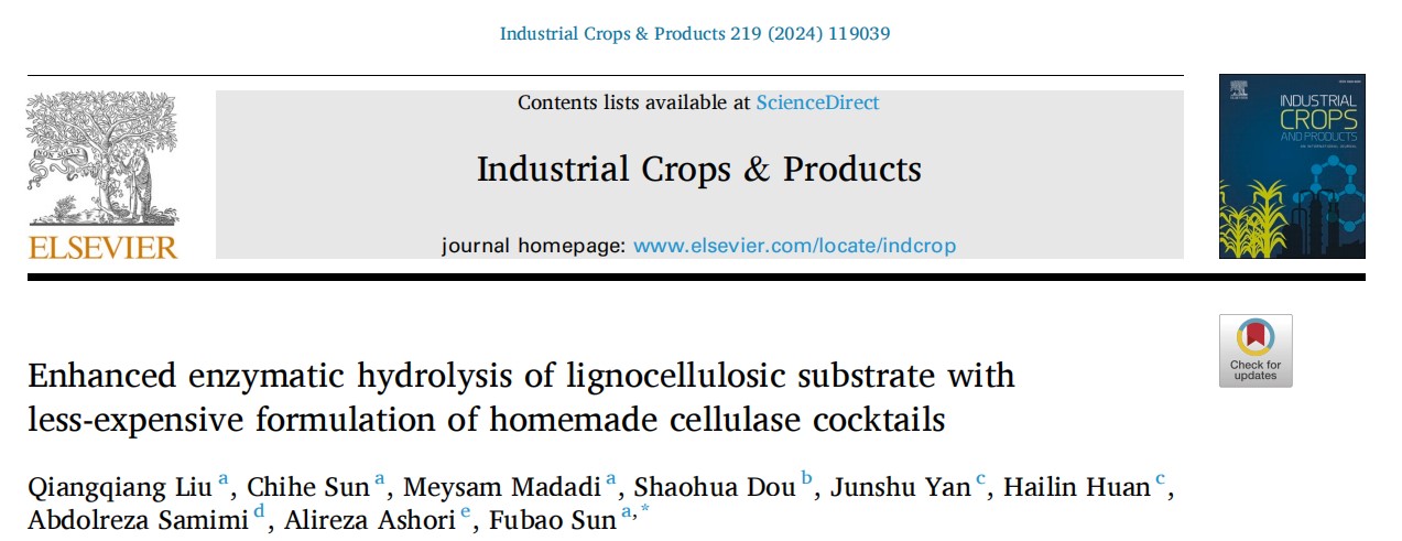 近期,beat365官网beat365中文官网生物资源与生物炼制研究团队在木质纤维素生物质酶法水解产糖方面取得重要进展,研究成果“Enhanced enzymatic hydrolysis of lignocellulosic substrate with less-expensive formulation of homemade cellulase cocktails”正式发表于Industrial Crops & Products(一区, Top, IF 5.6)。