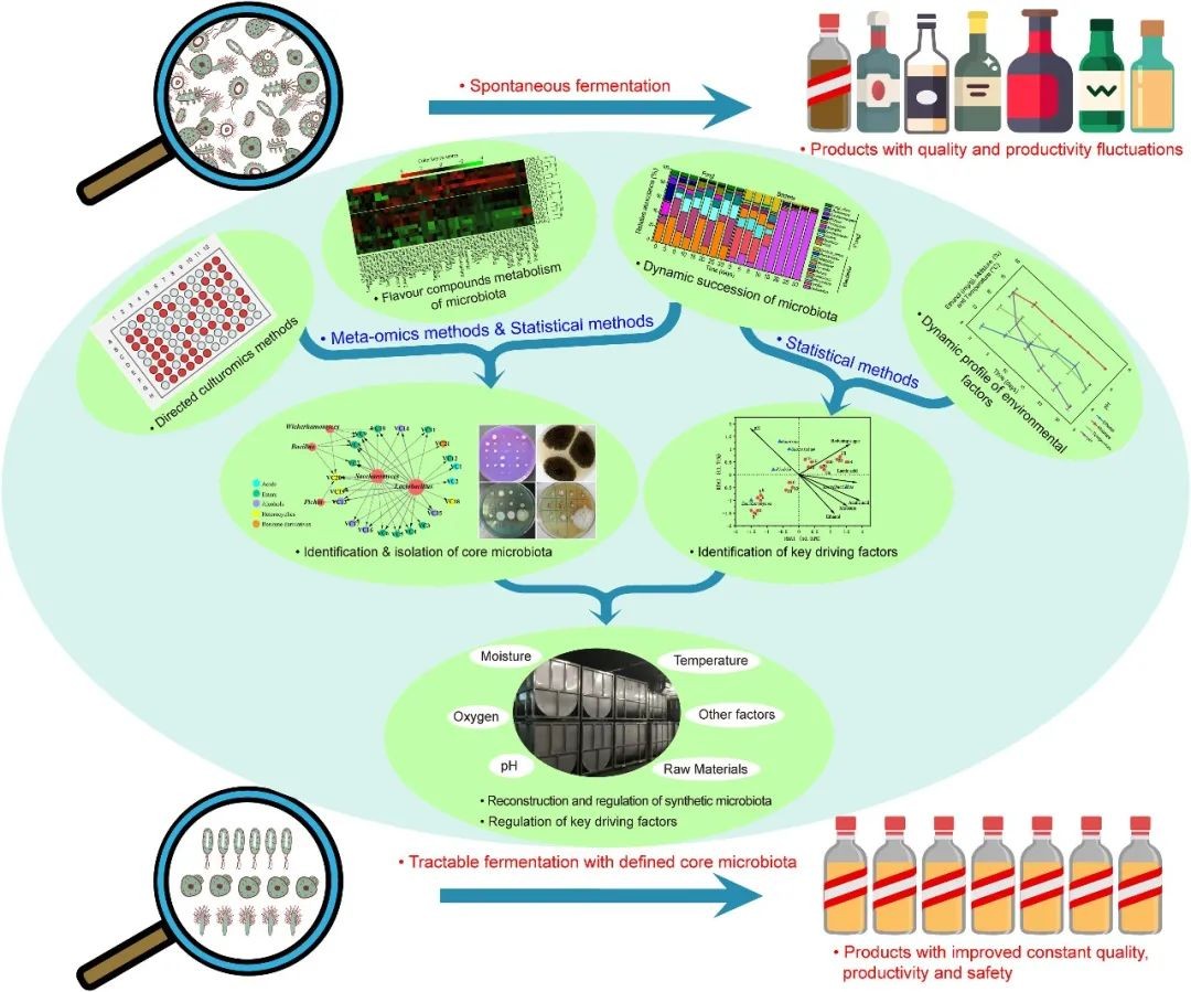 近期,beat365官网beat365中文官网徐岩教授团队在农林科学TOP期刊Trends in Food Science & Technology(IF:11.007)在线发表了题为“Can we control microbiota in spontaneous food fermentation? – Chinese liquor as a case example”的综述文章(https://doi.org/10.1016/j.tifs.2021.02.011)。