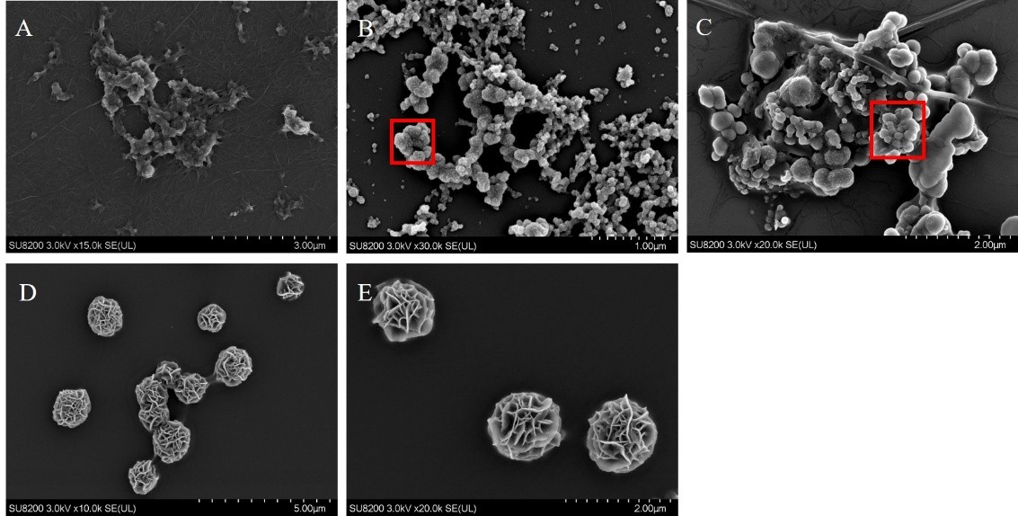 图二. DNA纳米花结构的场发射扫描电镜图