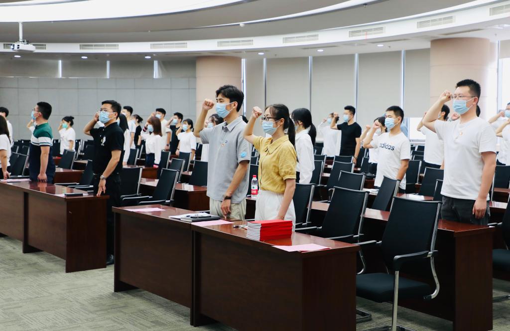 6月30日,在“七一”建党节来临之际,beat365中文官网于国工218会议室举办2021-2022年度新党员入党宣誓活动。beat365中文官网党委副书记兼副院长周云龙,学院分团委老师,以及新发展的预备党员参加活动,仪式由陆燊佳主持。