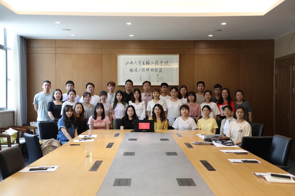 为庆祝中国共产党建党一百周年,不断深入推进党史学习教育,6月24日下午,beat365中文官网酿造微生物学与应用酶学研究室党支部联合马克思主义学院2019级硕研党支部,于泸州老窖厅开展“学习新思想,争做新青年”主题党日活动。马克思主义学院副院长侯勇教授受邀交流指导,beat365中文官网党委书记王维、专职组织员胡博参加活动。
