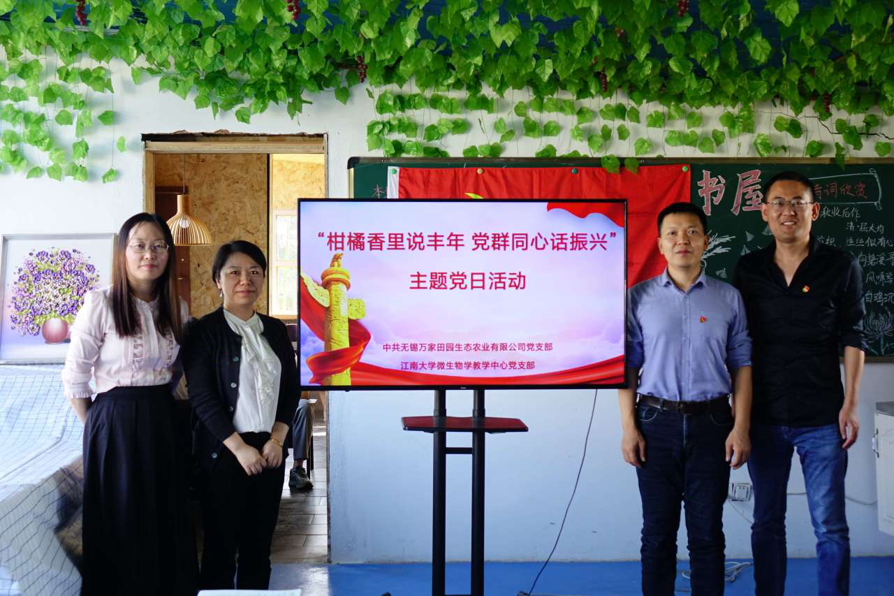 10月26日下午,beat365中文官网教工微生物学教学中心党支部与无锡万家田园生态农业有限公司党支部,在万家田园军嶂田园社区党建生活馆联合开展“柑橘香里说丰年,党群同心话振兴”主题党日活动。无锡万家田园生态农业有限公司党支部书记罗玉军,教工微生物学教学中心党支部书记陈献忠、副书记徐美娟及双方党员代表参加本次活动,活动由罗玉军主持。