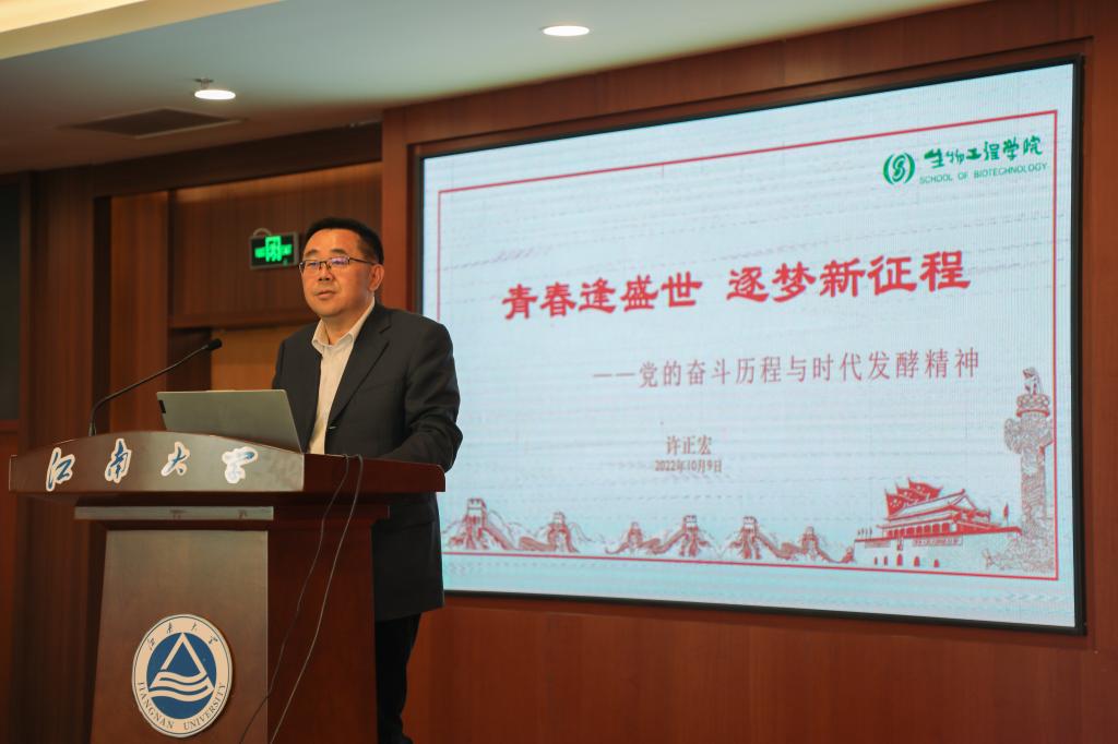 把准主基调,专业自信与思政教育相辅相成。许正宏院长为本科新生讲授一场题为《青春逢盛世逐梦新征程——党的奋斗历程与时代发酵精神》的“院长第一课”。他围绕党的历史进程与发酵精神的延续,强调当前学院发展机遇与挑战并存,应当深化一流学科运行机制、凝练生物工程学科方向、强化基础科学研究,同时以“士不可不弘毅,任重而道远”“道虽迩,不行不至;事虽小,不为不成”“独行快,众行远”三句古语勉励新同学发酵梦想,逐梦新征程。