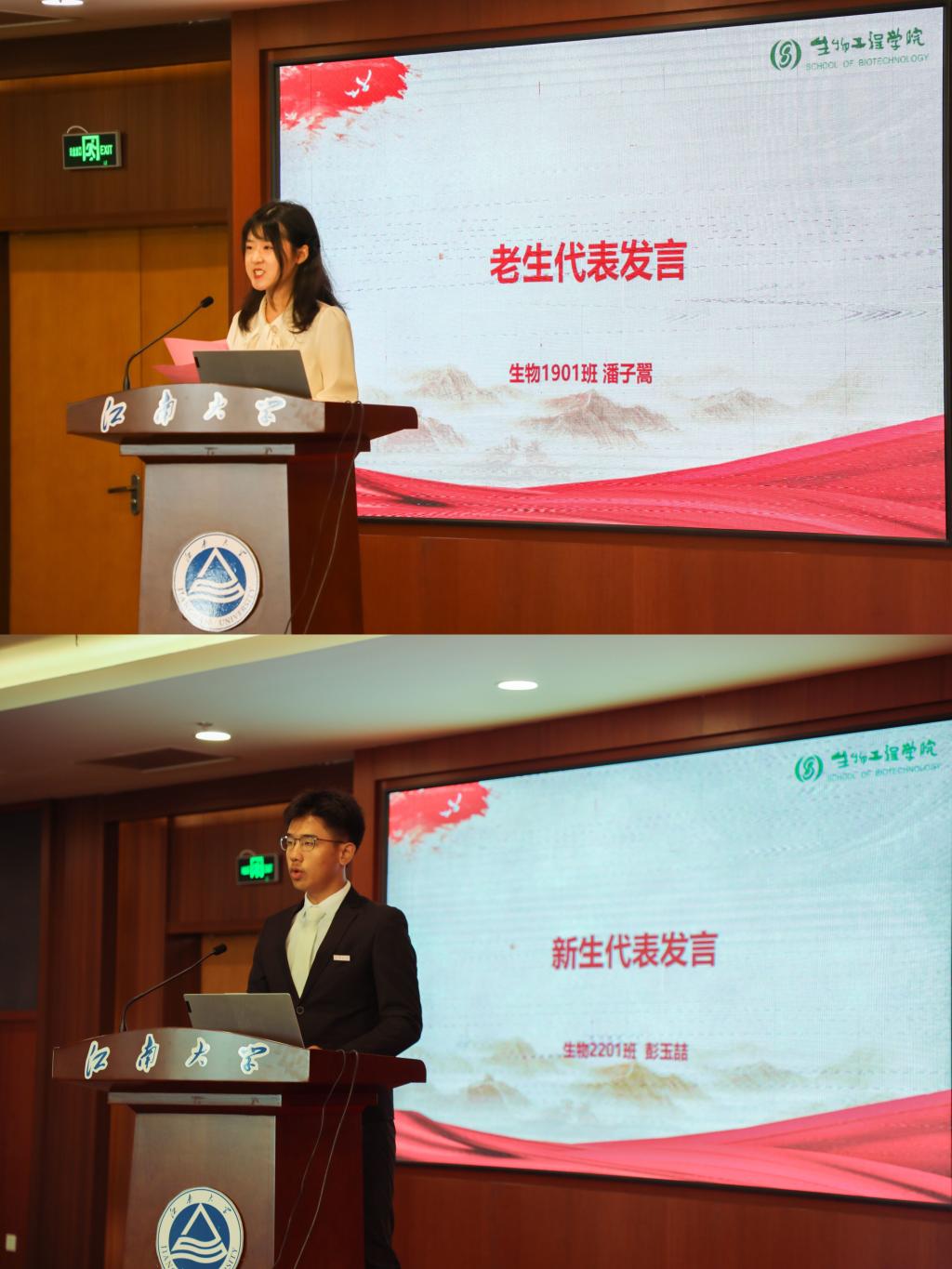 “没有谁的梦想能在躺平摆烂中实现,学校和学院为我们提供了学习先进知识的良好平台,我们一定在‘笃学尚行,止于至善’的校训的鼓舞下,在‘善于实践、勇于创新’的发酵精神的激励下,向着绚丽的理想,迈出坚实的步伐!”生物2201班彭玉喆在新生见面会上代表全体新生喊出坚定的誓言,2022级,未来可期。