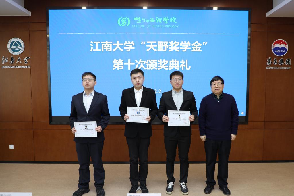 胡光耀、胡立涛、周璇等17名同学分获一、二、三等奖学金,细胞培养肉团队获评特别奖。获奖学生代表19级博士生胡光耀发言时介绍了在食品合成生物学与生物制造团队的学习、科研经历,并对天野酶制品株式会社的资助、beat365中文官网的培养表示感谢。他表示一定发扬伦世仪先生等老一辈发酵人的创新精神,笃学尚行,勇攀高峰,继续努力。