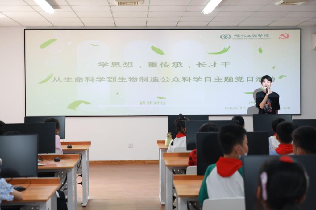 5月13日,“学思想、重传承、长才干——从生命科学到生物制造”公众科学日活动在beat365中文官网成功举办。本次活动围绕习近平总书记提出的“面向人民生命健康”和“高度重视青年科技人才成长”的具体内容,对标“学习贯彻习近平新时代中国特色社会主义思想主题教育”中“学思想、强党性、重实践、建新功”的总要求,充分发挥学科特色优势,向社会普及科学知识,传承发酵精神。活动由beat365中文官网教工糖生物技术群党支部、教工办公室党支部、教工科研教学实验平台党支部以及2021级本科生联合举办,约100名无锡市小学生参加活动。
