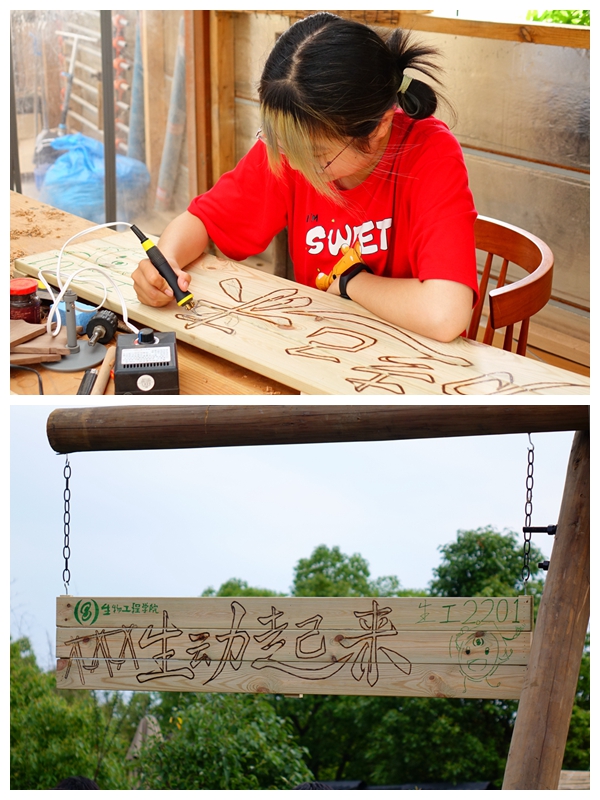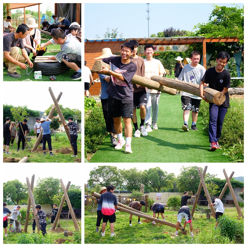 本次实践活动的主题是制作木制秋千。在实践基地老师的指导下,同学们分为四组,分别完成了搭建立柱、制作展示牌、安装秋千底座和制备水泥等工作。尽管烈日炎炎,但同学们依然热情高涨,积极参与。在有序高效的分工合作之下,历经四个小时的不懈努力,最终完成了秋千的制作。