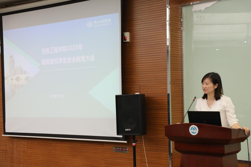 7月7日下午,学院召开暑期留校学生安全教育大会。学院党委副书记、副院长林丹,各年级辅导员,学生宿舍寝室长,实验室动态观察员共同参与会议。首先,学院心理健康专项辅导员宋大有详细讲解了学校假期留校学生的管理要求,并对如何加强同学间互助、共筑心理健康防护网做出了具体指导。随后,林丹对留校学生代表提出三点要求:一要明确留校目标,做好合理规划。要始终牢记留校初衷,珍惜和利用好在校时间,在考研复习、科研实验、社会实践等事项中,更加积极地与老师联系,寻求有效帮助,促进目标达成。二要树立“安全第一责任人”意识。要遵守校规校纪,注意人身财产、宿舍、出行安全,提高防诈意识,做好自己的安全守护员。三要劳逸结合,注重全面发展。要合理分配时间,在潜心学业的同时,加强体育锻炼,丰富文化生活,养成健康的生活习惯。