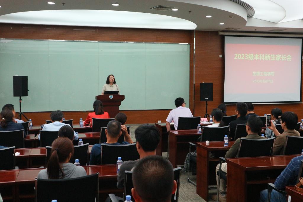 会上,陈献忠向家长们整体介绍了生工学院的基本情况及人才培养政策。林丹从新生心理适应表现、大学阶段心理发展特点、构建和谐的亲子关系、心理健康小百科等方面与家长们分享交流。随后,程捷音作总结讲话,对家长们选择生工学院表示感谢,对家长们选择生工学院表示感谢,并请家长放心,学院将和家长们携手合作,相互支持,共同助力学生度过充实而有意义的大学生活。问环节,家长就考研、就业方向等问题与在座老师进行热烈交流。