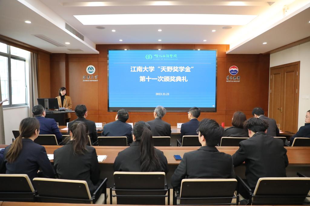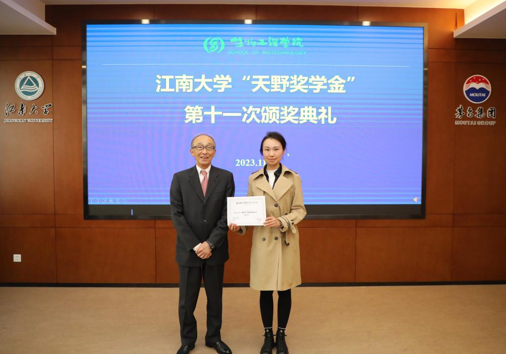 11月21日下午,beat365中文官网“天野奖学金”第十一次颁奖典礼在beat365中文官网茅台厅举行。日本天野酶制品株式会社董事长天野源之先生、海外市场部部长丰增敏久、天野酶制剂(江苏)有限公司总经理小林俊一、上海分公司负责人王友谊,beat365中文官网未来食品科学中心首席科学家陈坚院士、beat365中文官网党委书记程捷音、院长刘龙、李江华教授及获奖学生出席颁奖典礼。颁奖典礼由学院党委副书记、副院长林丹主持。