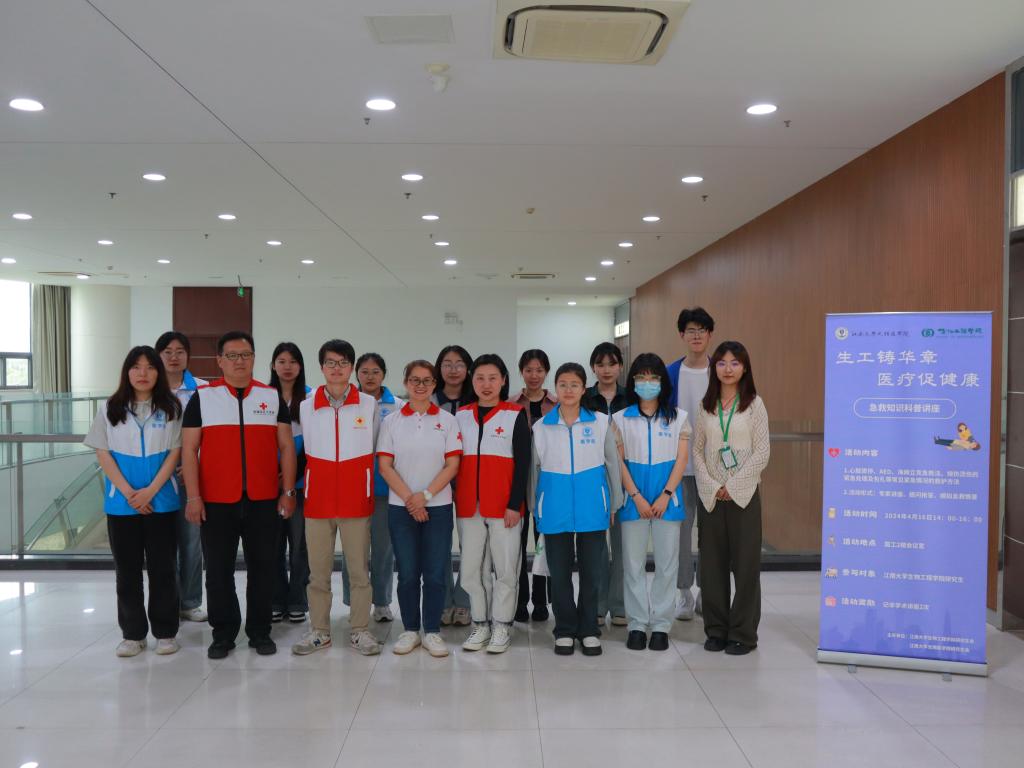 4月16日下午,beat365中文官网联合无锡医学院,在国家工程研究中心二楼报告厅举办“生工铸华章,医疗促健康”急救知识科普讲座。活动特邀红十字会救护培训师、无锡市红十字赈济救援队副队长唐镇棣主讲,并通过科普讲座、提问抢答、模拟演练等多种形式开展科普。