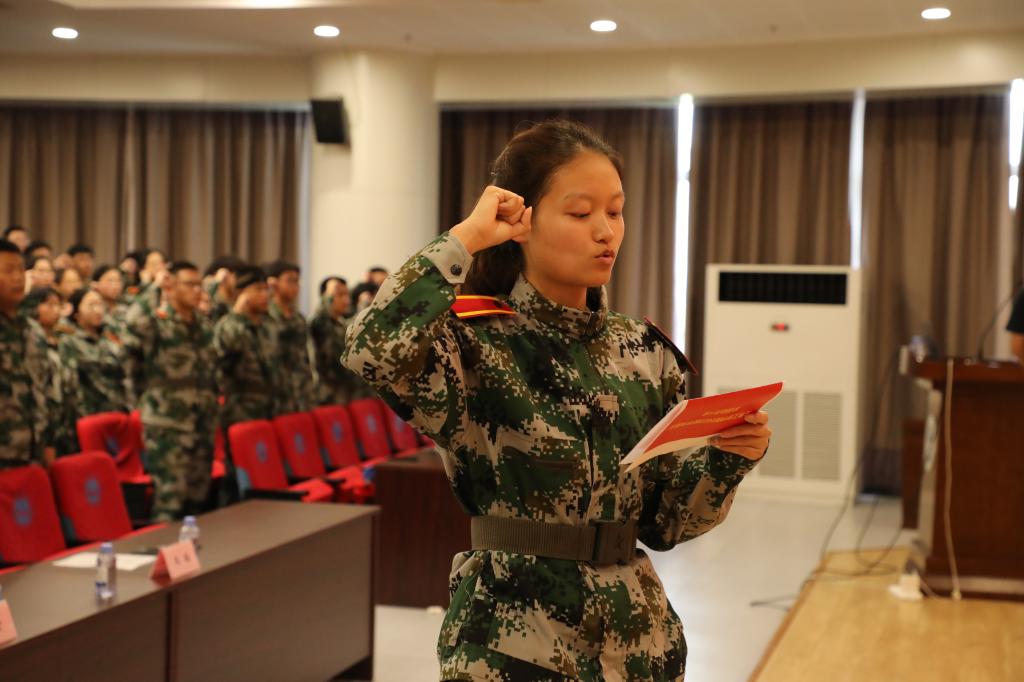 22024级本科生代表张潇予举起军训旗帜,带领全体参训同学宣誓。在铿锵有力的军训誓词中,全体参训新生激情澎湃,斗志昂扬。生工学子定能以青春之名,应军训无限挑战;以奋发之姿,将热血挥洒四方!