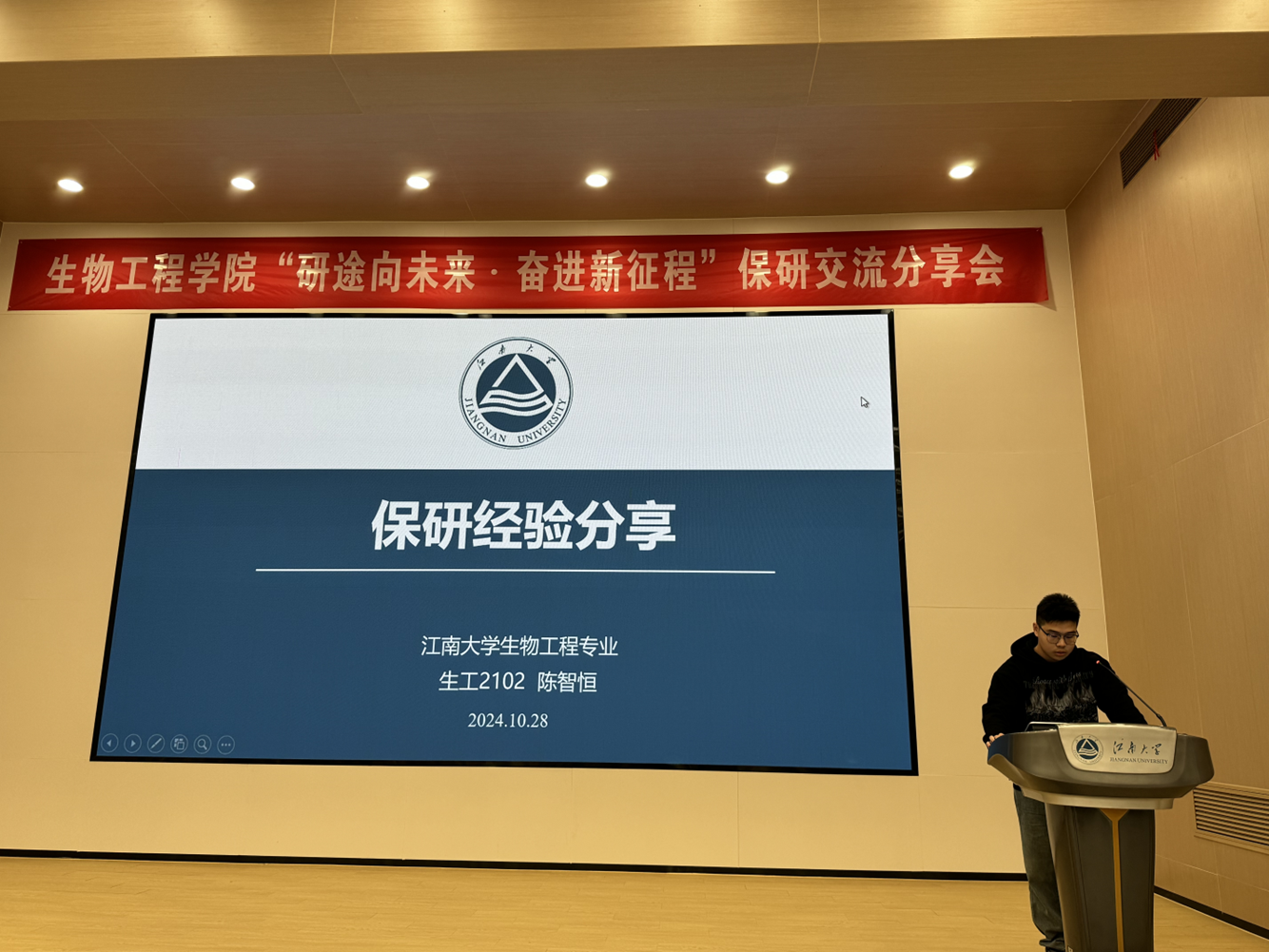 习近平总书记在给中国国际大学生创新大赛参赛学生代表的回信中提道:“创新是人类进步的源泉,青年是创新的重要生力军。”为积极响应党的二十大报告中提到坚定不移贯彻落实科教兴国战略,强化现代化建设人才支撑,10月30日晚,beat365中文官网在第一教学楼1C109举办“研途向未来·奋进新征程”保研交流分享会,旨在加强本科生升学深造指导,充分发挥朋辈典型引领作用。beat365中文官网分管本科学风建设、竞赛工作辅导员周杰,推免至双一流高校优秀本科生代表以及200余名在读本科生参会。会议由beat365中文官网学习促进发展中心负责人卢洪晨主持。