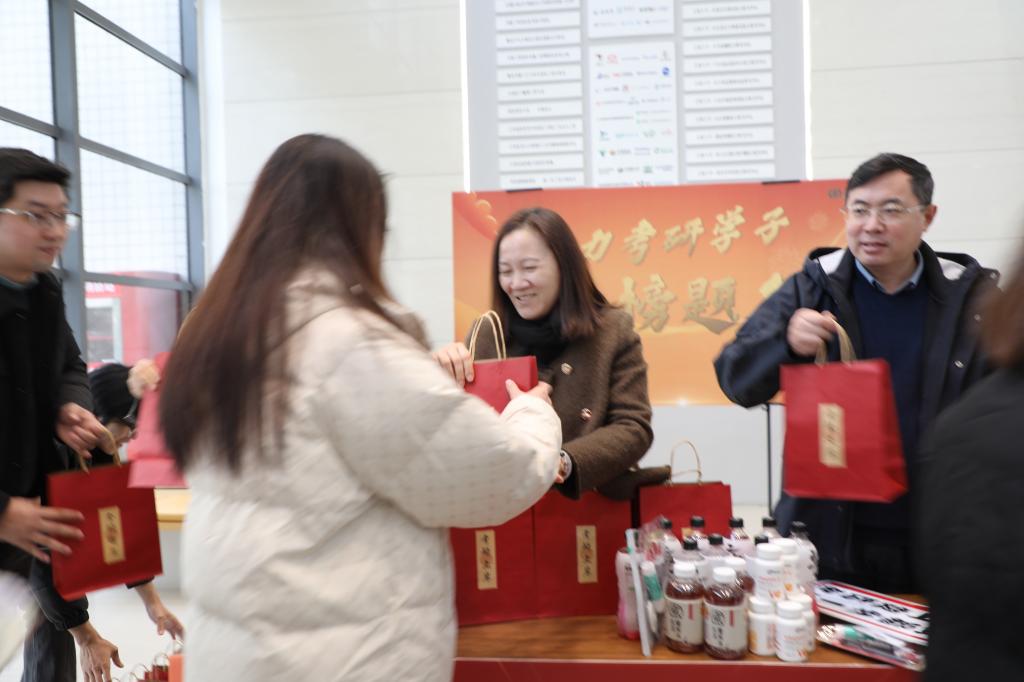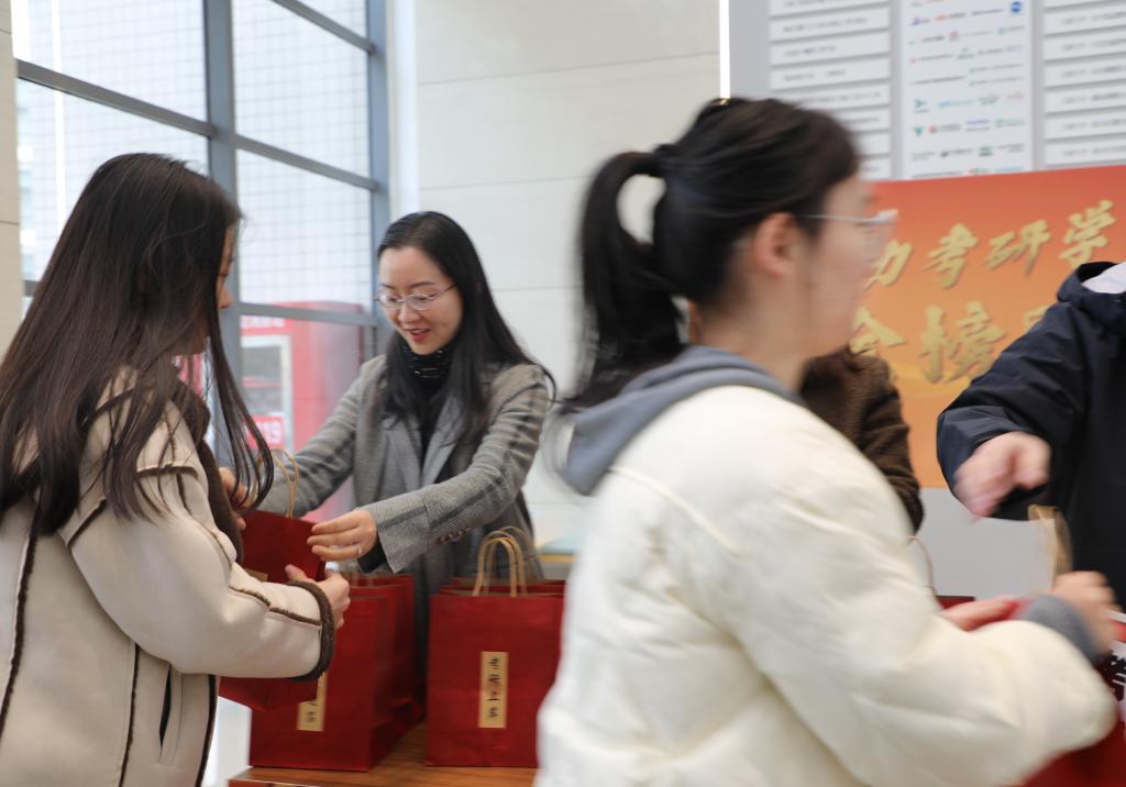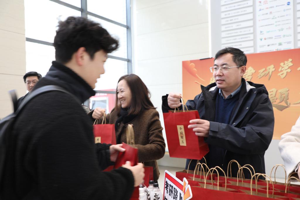 活动现场,老师们亲切询问考研学子近期的学习生活情况,鼓励大家在冲刺阶段继续努力,坚持到底。最后,老师们也不忘细心叮嘱同学们及时添衣保暖,在备考过程中保证充足的睡眠,保持均衡的营养摄入,元气满满地迎接每一个清晨的曙光。慰问现场氛围温馨欢快,老师们用幽默风趣的话语来为考研学子们舒缓压力、放松心情。