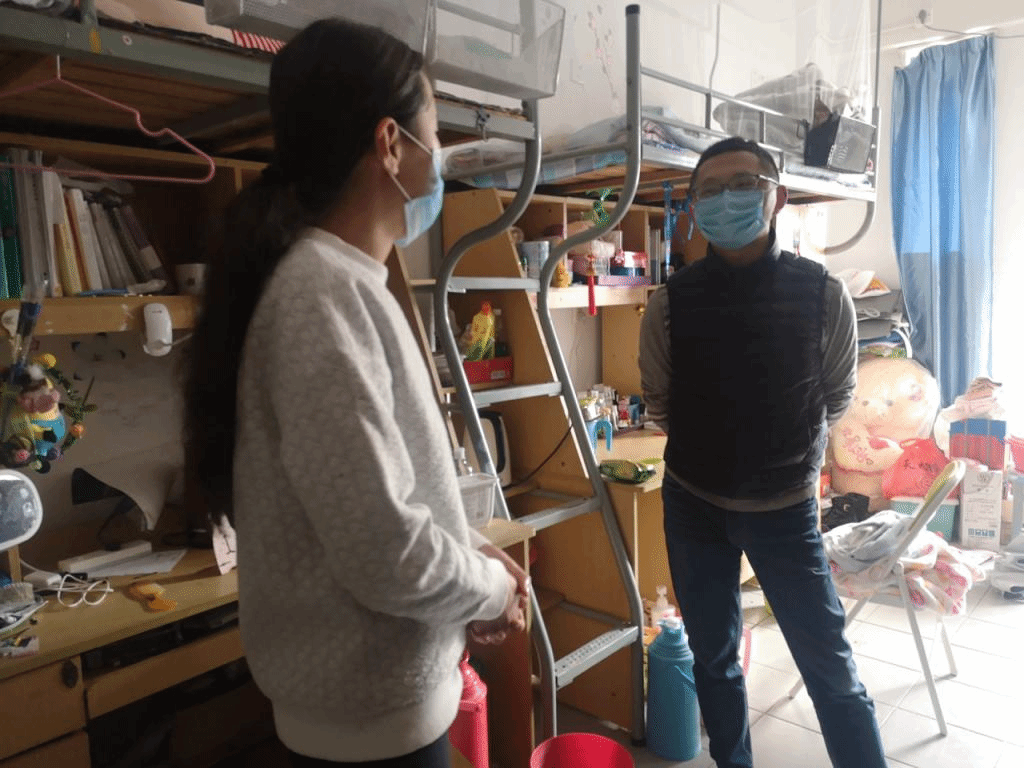 近日,学院党委副书记、(兼)副院长陈勇分团委书记葛玲、研究生辅导员桑鸿波、2018级辅导员侯景瑞逐个走访看望留校学生,了解他们在校学习、生活情况。
