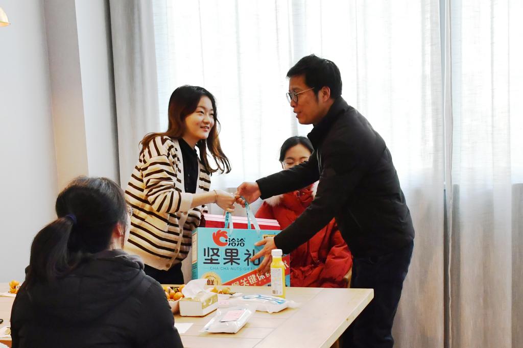 学院召开寒假留校学生茶话会,参会的师生谈理想、话成长,互送节日祝福。学院领导勉励学生做好学习科研规划,以寒假为契机养精蓄锐、静心磨炼、总结成长。无锡市荣氏贸易有限公司相关人员出席茶话会,并为全体留校学生送上最真挚的关心和祝福。
