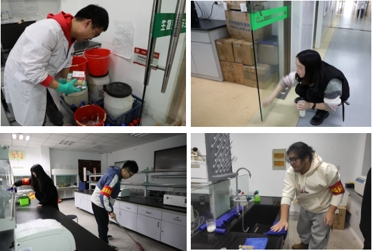 随后,支部同学来到学院草坪、教师办公室、教学实验室、仪器室、会议室开展环境卫生整理。扫地、拖地、抹桌、资料整理,同学们相互配合、干劲满满。他们在合作中培养情感、在劳动中感受成长、在服务中体会价值。看到干净整洁的学院环境,同学们自豪之情油然而生。