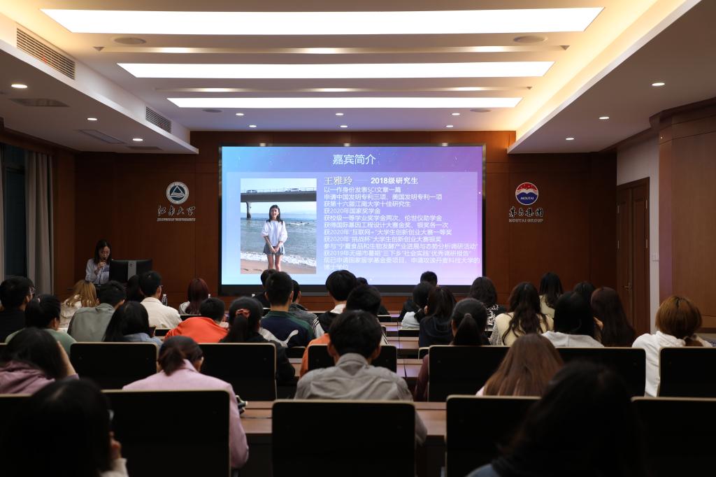 4月22日晚,“汇青春榜样,启梦想远航”——朱宝镛大讲堂之青年论坛第一期活动在生工学院茅台厅拉开帷幕。在建党一百周年之际,学院孙驰翔和王雅玲两位优秀青年党员分别以“升学规划及经验分享”和“时间管理与职业规划”为主题为同学们带来了干货满满的朋辈辅导经验讲座,现场座无虚席。