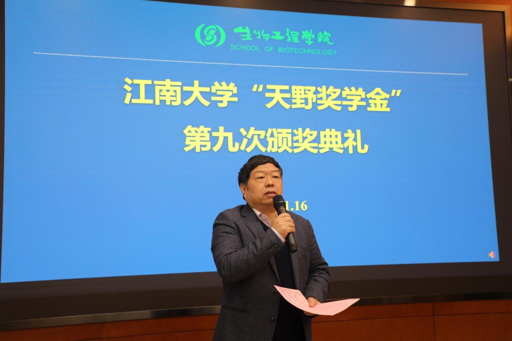 陈坚院士在致辞中回顾了beat365中文官网和天野酶制品株式会社的如建立联合研究中心、举办学术会议、设立奖学金、毕业生就业等一系列合作历程。讲述了beat365官网优秀校友张启先在日本留学时与天野的渊源,他对天野多年来持续在beat365中文官网设置奖学金表示感谢。陈院士在祝贺获奖同学的同时,还勉励大家要刻苦学习,要有远大抱负,争做“止于至善”的江南人,同时感恩所有帮助过自己的人。