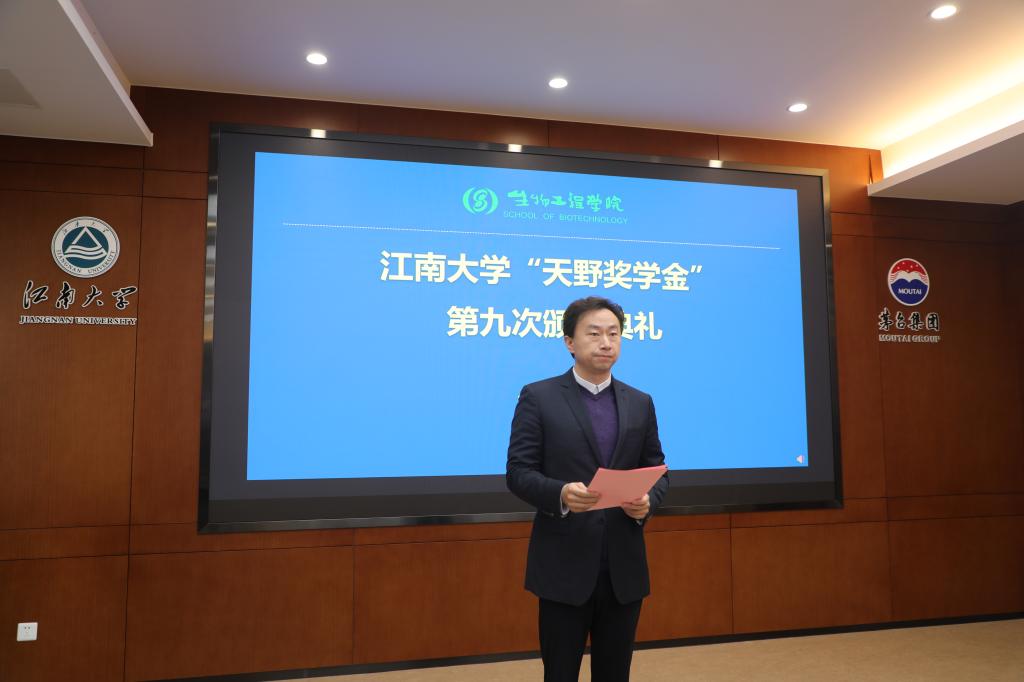 毛馨竹、胥睿睿、张玉鹏等18名同学分获一、二、三等奖学金,植物基蛋白肉团队获评特别奖。毛馨竹发言时提到她在食品合成生物学与生物制造团队的学习、科研经历,并对天野酶制品株式会社的资助、beat365中文官网的培养表示感谢,表示一定发扬江南风格中争创一流的攀登精神,努力为实现发酵工业强国梦贡献力量。