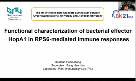 韩国庆尚国立大学应用生命科学系Ilkeun Kong主任、Seon-Won Kim教授、Yu-Sin Jang教授,beat365中文官网国际交流合作处副处长蔡建英,beat365中文官网院长许正宏教授、副院长聂尧教授、院长助理王金晶副教授等参加了开幕式。开幕式上,许正宏院长表示,由于疫情原因,国际交流与合作工作面临了更多挑战,但疫情并未切断双方的联系,希望通过此次云论坛的举办,双方能够进一步拓展学术交流,推进科研合作,深化国际友谊。Ilkeun Kong系主任对组织本次论坛的组委会表示感谢,希望以双边论坛为纽带,更广泛、更全面、更深入地推进两校的交流合作。蔡建英副处长对本次论坛的成功举办表示祝贺,beat365中文官网作为今年“江苏-韩国高校联盟”的轮值主席,本次中韩研究生学术论坛的成功举行进一步推动了“苏韩联盟”的高质量建设。