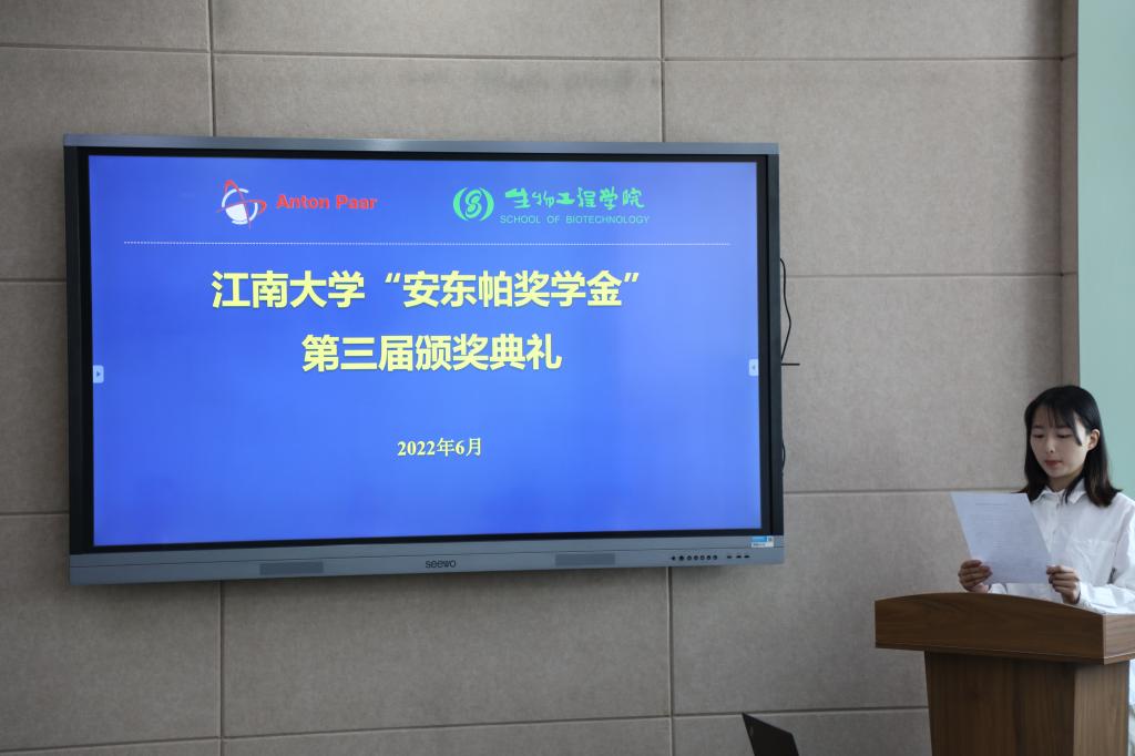 6月8日上午,beat365中文官网第三届“安东帕奖学金”颁奖典礼暨云端校企交流会以线上线下相结合的形式举行。安东帕(上海)商贸有限公司市场部经理畅良艳、实验室销售经理陈希、销售副总程张红,beat365中文官网李崎教授、陈献忠副院长、钮成拓副研究员及获奖学生参加活动,会议由辅导员张同舟主持。