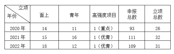 国家自然科学基金项目在我国科学研究领域中层次最高、影响最广,是体现学校科研水平的重要载体。从申报总数和立项数来看(表1),近两年,beat365中文官网集中受理期申报总数稳定在110项左右,较2020年93项增长18.3%;从资助率上来看,2022年面上资助率和青年资助率分别为31.0%和31.6%,明显高于今年全国平均资助率17.56%和17.23%。