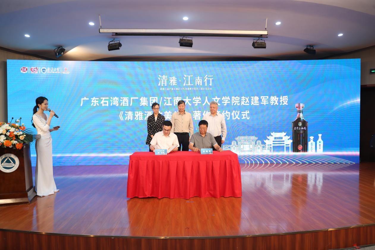 在本次活动中,清雅美学系列工程两大项目正式启动。其中,石湾酒厂集团联合赵建军进行《清雅酒体美学》项目签约。该书将通过研究清雅酒体品类的美学内涵,对清雅酒体进行概括梳理,完成其新美学概念体系创新研究。随后,“2022年清雅酒中国功夫酒瓶设计大赛”正式启动,本次大赛以“中国功夫”为主题,向全国酒瓶设计工作者及相关院校学生征集中国功夫酒瓶的设计方案,旨在通过中国功夫与白酒文化的深度融合,弘扬中国传统的武术文化和白酒文化。最后,范绍辉向beat365中文官网赠送纪念酒,作为双方合作和友谊的见证,张影陆接受捐赠。