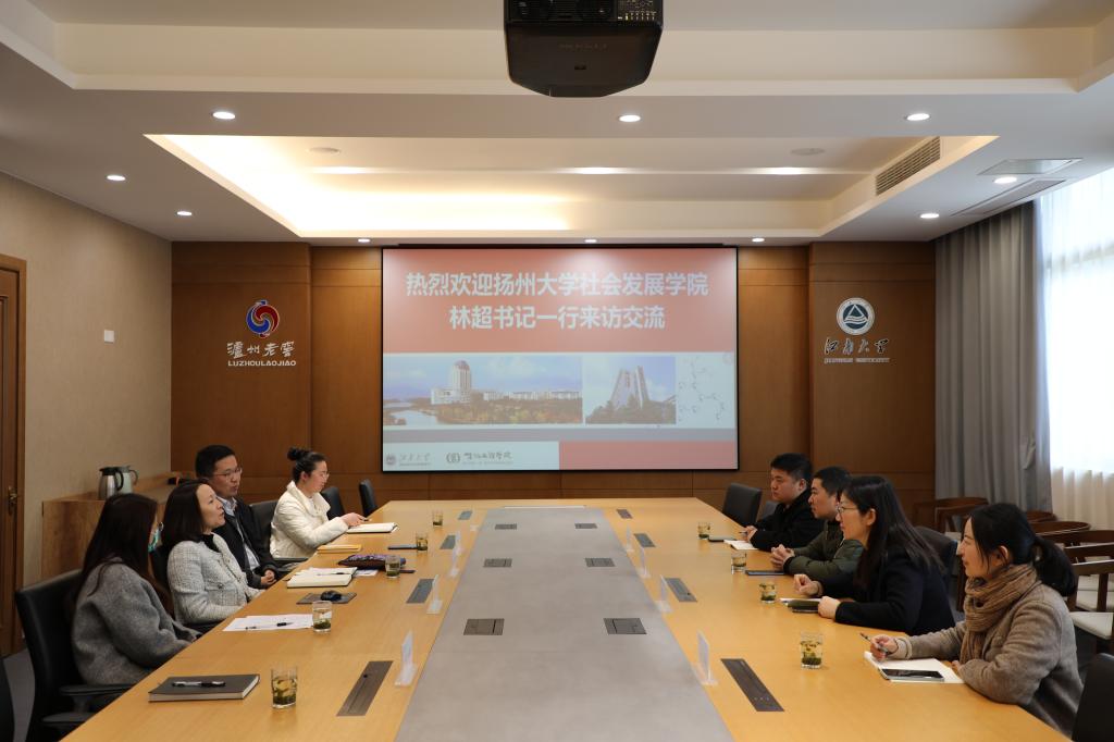 3月24日上午,扬州大学社会发展学院党委书记林超、党委副书记杨方、学生专职辅导员沈政和张超等一行来我院进行工作交流。beat365中文官网党委书记程捷音,食品学院党委副书记、副院长李雷,beat365中文官网分团委书记许亦男、辅导员陆燊佳和宋大有等参加座谈。