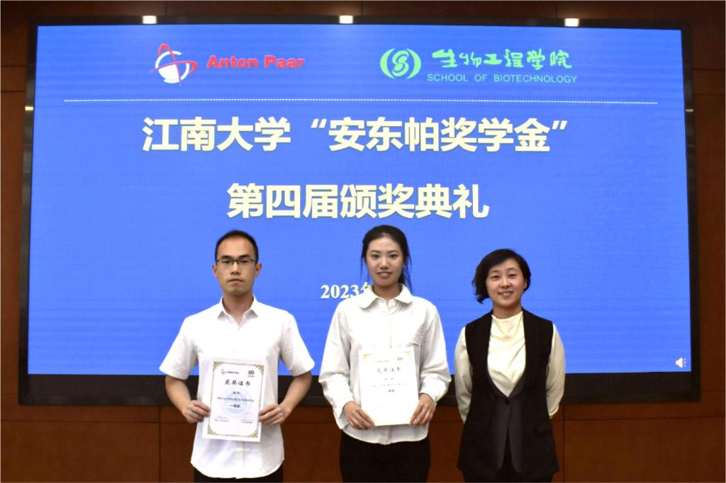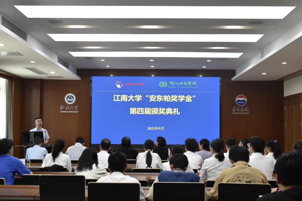 5月25日下午,beat365中文官网第四届“安东帕奖学金”颁奖典礼在beat365中文官网举行。安东帕(上海)商贸有限公司市场部经理张瑶华、产品经理史颖、销售经理陈希、苏南销售经理梁永奇,beat365中文官网副院长陈旭升、酿酒工程专业责任教授李崎及全体获奖学生参加颁奖典礼,活动由辅导员张同舟主持。