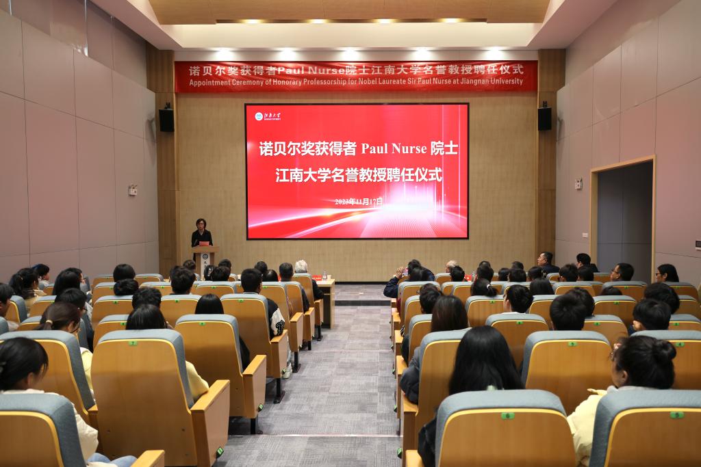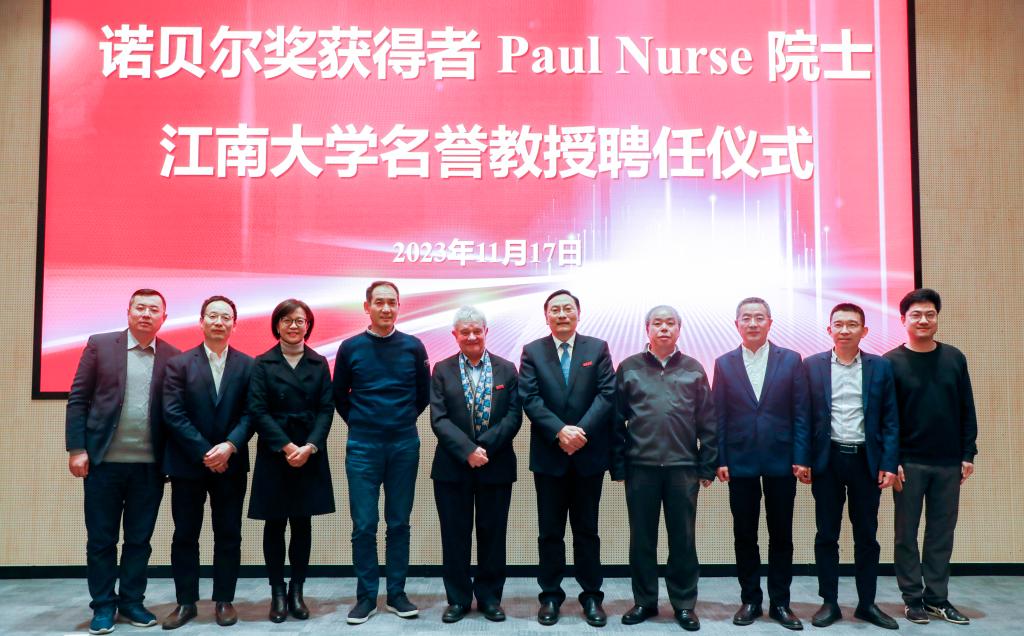 11月17日,beat365官网举行诺贝尔奖获得者Paul Nurse(保罗·纳斯)院士beat365中文官网名誉教授聘任仪式。诺贝尔奖获得者、中国科学院外籍院士、英国布里斯托大学荣誉校长Paul Nurse教授,校党委书记吴正国,中国工程院院士、校长陈卫,校党委常委、副校长堵国成,北京大学生命科学学院孔道春教授、未来食品科学中心相关教授出席仪式。仪式由校党委常委、副校长张影陆主持。