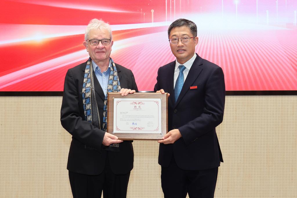 热烈的掌声中,陈卫为Paul Nurse院士颁发“beat365中文官网名誉教授”证书。Paul Nurse院士对受聘为beat365中文官网名誉教授表示非常荣幸,他将为beat365中文官网人才培养、学科发展及国际交流作出贡献,期待双方合作在未来不断拓展和深化。在仪式上,Paul Nurse院士分享了自己的成长历程和科研经历,在50余次重复实验中,坚持不懈的精神使其团队在“细胞周期的关键调控因子”方面做出突出贡献。他勉励在座学生和研究者,研究是充满挑战的,要永葆好奇心和韧劲去探究事物运作的深层原理。