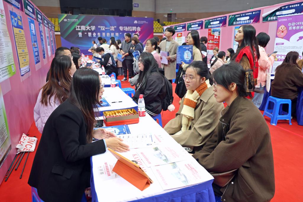吴莹从人才落户、大学生补贴、交通文旅补贴以及青年人才驿站等四个方面介绍了无锡市青年人才政策。名城孕育名校,名校服务名城。“双一流”的beat365中文官网与“太湖明珠”无锡之间从来都是相融共生的关系。据悉,在本次招聘会提供的岗位中,有近半数来自无锡,留锡就业已成为广大毕业生的最佳选择之一。