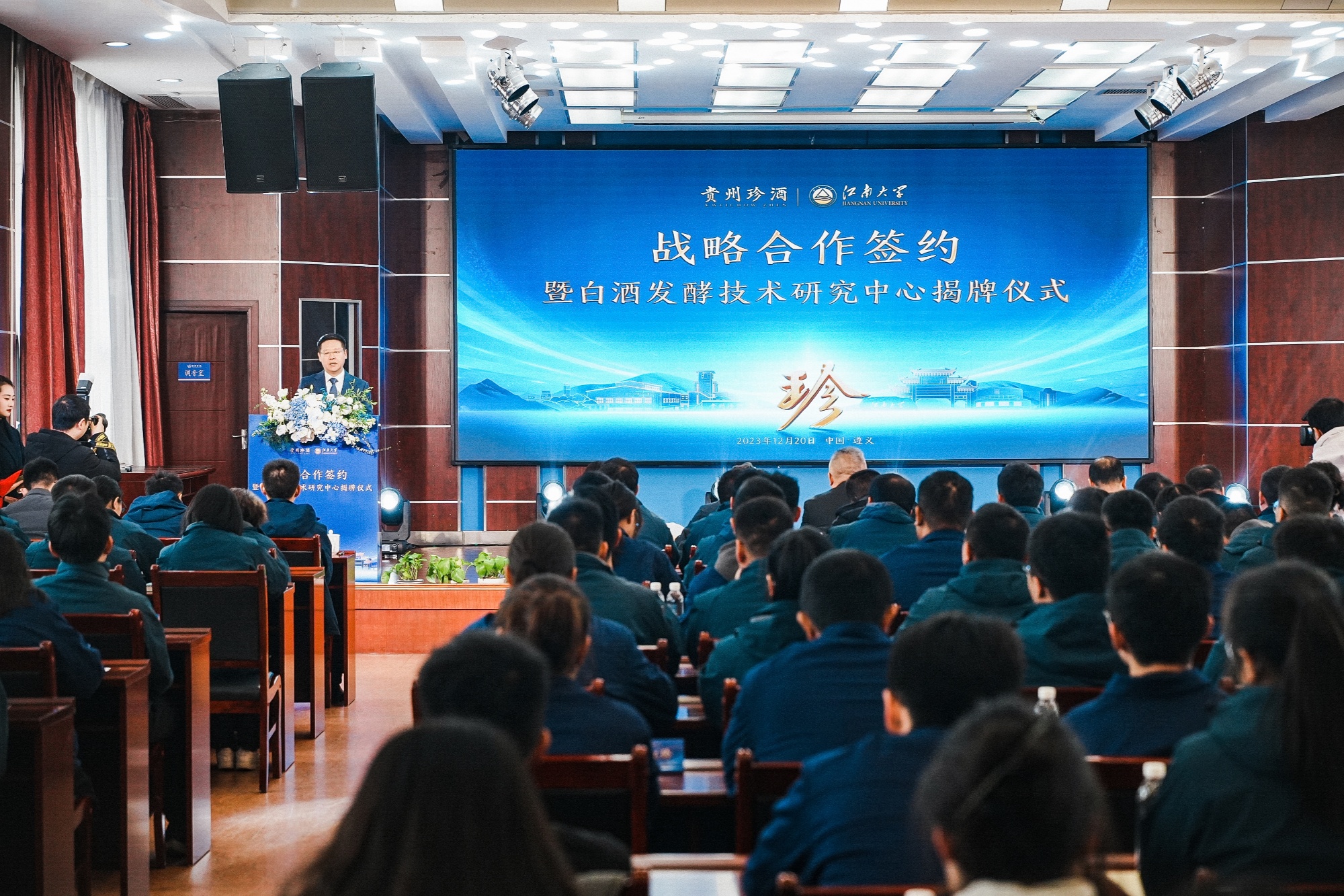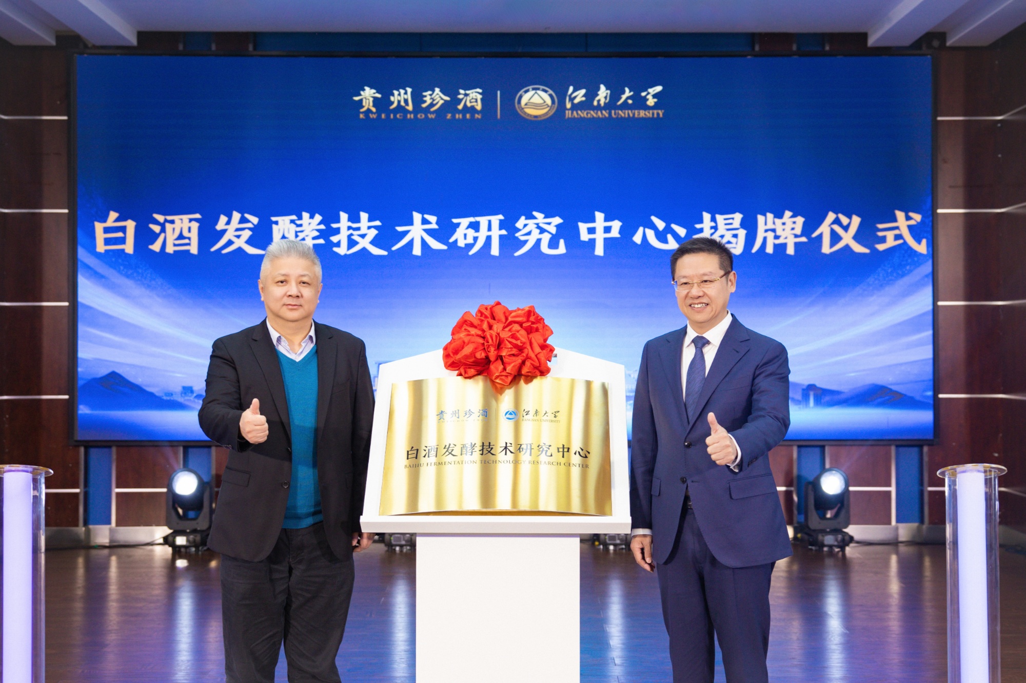 贵州珍酒与beat365中文官网联合组建成立白酒发酵技术研究中心,将为珍酒提供技术支持,并围绕酱酒的发酵工艺、发酵微生物、风味感知等前沿技术和应用技术进行研究,并形成科研成果。徐岩与吴向东共同为研究中心揭牌。