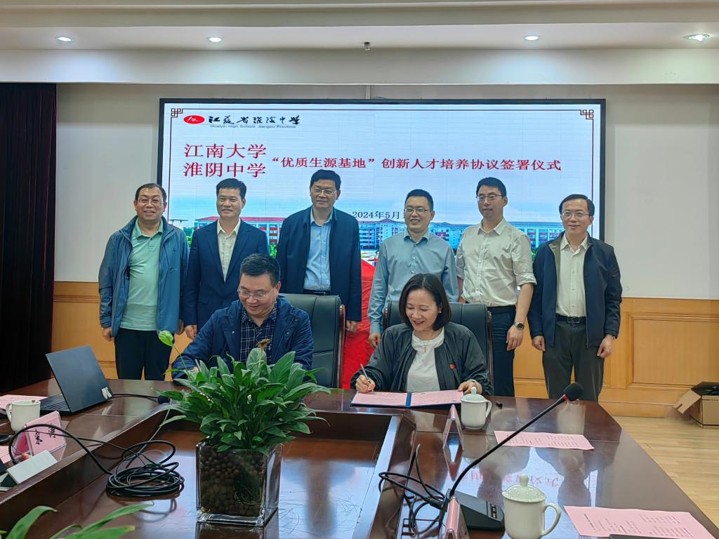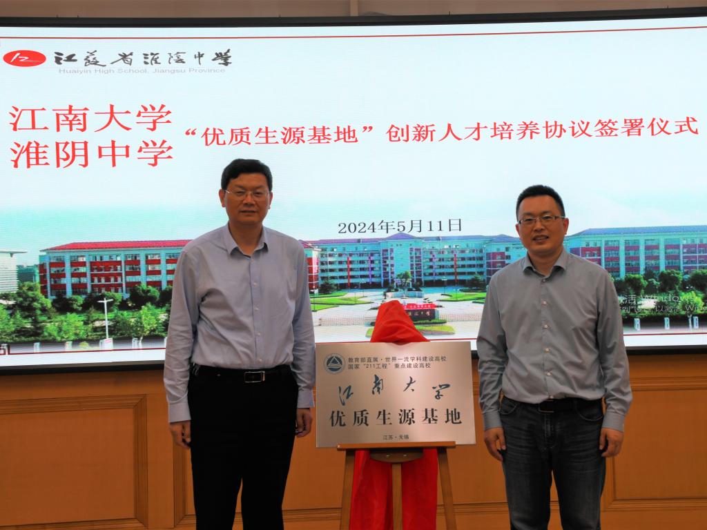 5月11日,beat365官网beat365中文官网、食品学院、设计学院组团前往江苏省淮阴中学走访交流,开展科普宣讲,并举行优质生源基地签约仪式。beat365中文官网党委书记程捷音、设计学院党委书记王维青、食品学院副院长翟齐啸、设计学院副院长胡伟峰、beat365中文官网教授周楠迪及相关负责同志一同前往。淮阴中学党委书记、校长朱留明,副校长张明兵等接待了beat365中文官网一行。
