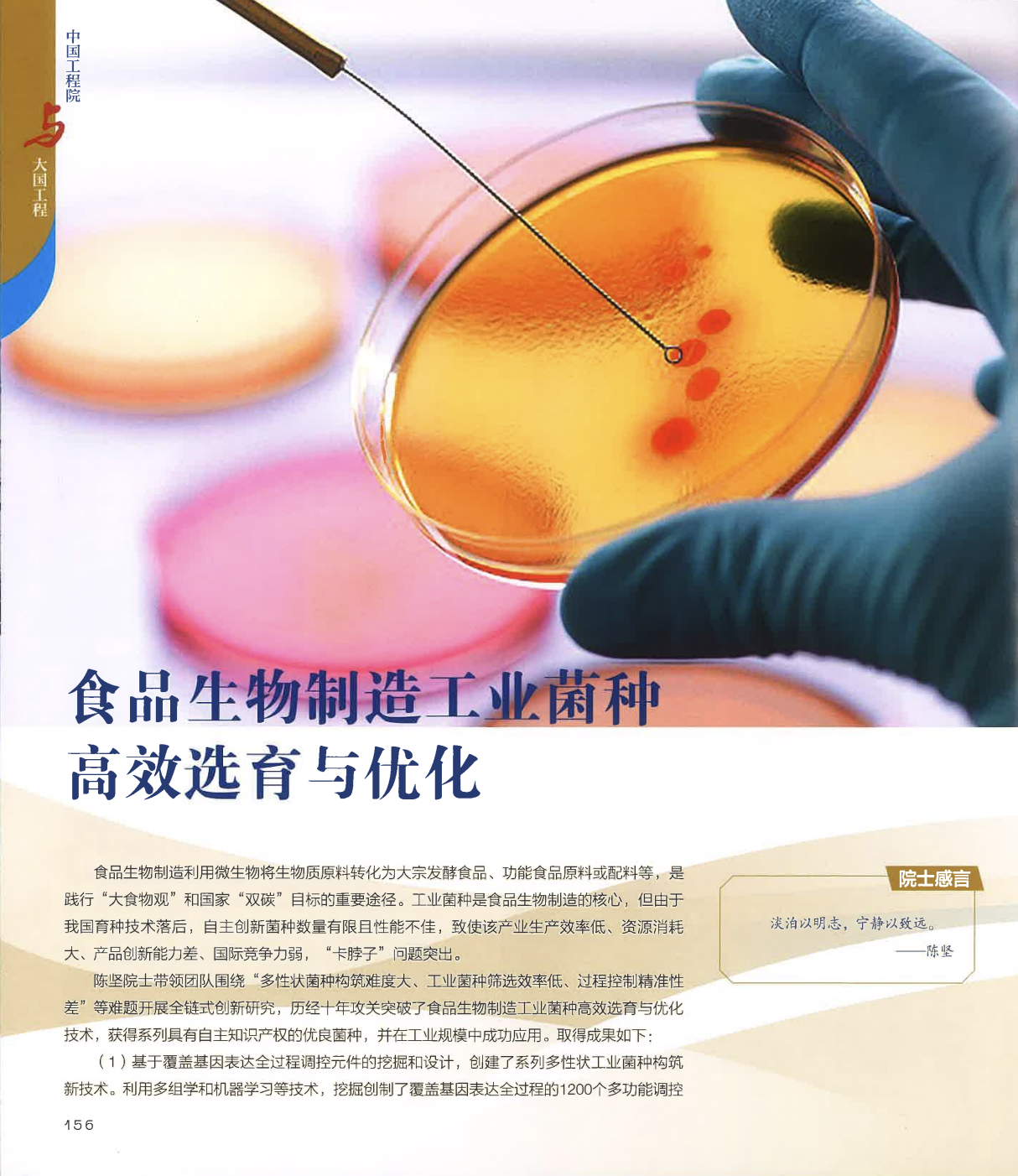 beat365中文官网未来食品科学中心陈坚院士团队成果《食品生物制造工业菌种高效选育与优化》成功入选100项具有代表性的工程科技成果。