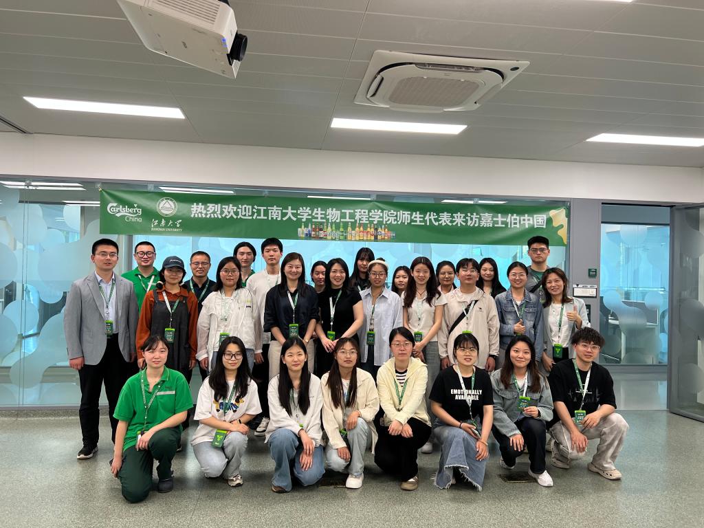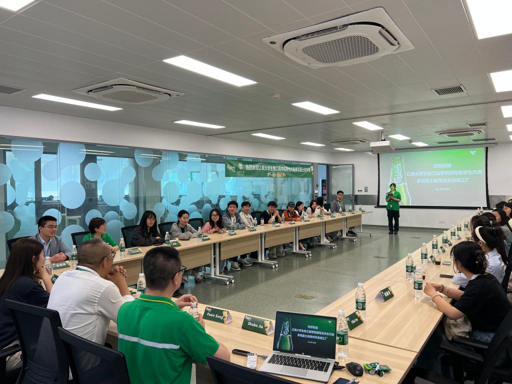 4月29日,beat365中文官网党委副书记兼副院长林丹带队赴嘉士伯天目湖啤酒(江苏)有限公司开展访企拓岗交流活动,学院郑飞云副教授、辅导员张同舟及学生代表20余人一同参加。嘉士伯中国国际业务单元供应链总监崔彦坤、人力资源总监贾舒博、国际业务单元常州天目湖酒厂厂长宋伟旭、人力资源经理李芳菊等参加接待。