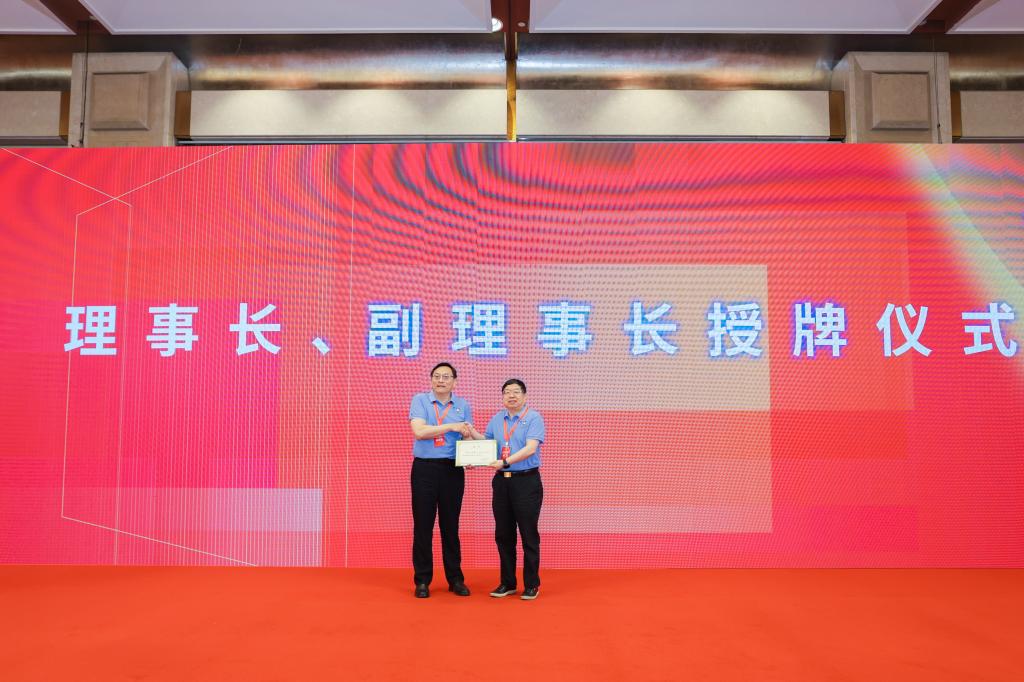 吴正国为伦世仪教育基金理事长陈坚院士授牌。