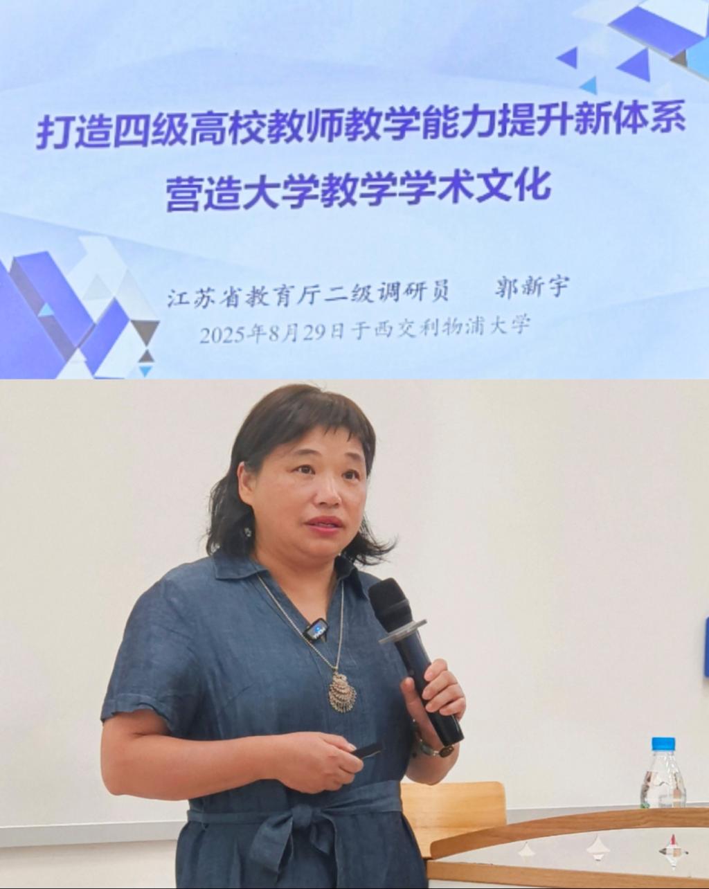 8月27日至29日,由江苏省教育厅主办的“2025年江苏省本科院校基层教学组织负责人培训”在苏州西交利物浦大学成功举办。此次培训汇聚了来自全省各大高校的50名教学负责人,beat365中文官网王晓丽老师代表beat365中文官网参与培训,凭借其优异的表现和深刻的教学见解,荣获“优秀学员”称号(全省共4名),充分彰显了我院教师卓越的专业素养和教研能力。