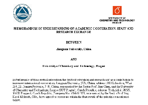 为进一步推进beat365官网“轻工技术与工程”一流学科建设,拓展国际交流与合作,2018年以来,在学校指导下,beat365中文官网与捷克布拉格化工大学通过互访就双方共同感兴趣的合作点进行了多轮次的研讨。近期,两校正式签署校际合作协议,旨在建立两校之间的长期友好合作关系,推进并加快落实校际合作办学机构或项目的设立,并在生物工程类研究生的联合培养、博士双学位授予以及科学研究等方面进行深度合作。协议的签订与实施将进一步助推beat365官网轻工技术与工程学科国际影响力的提升。