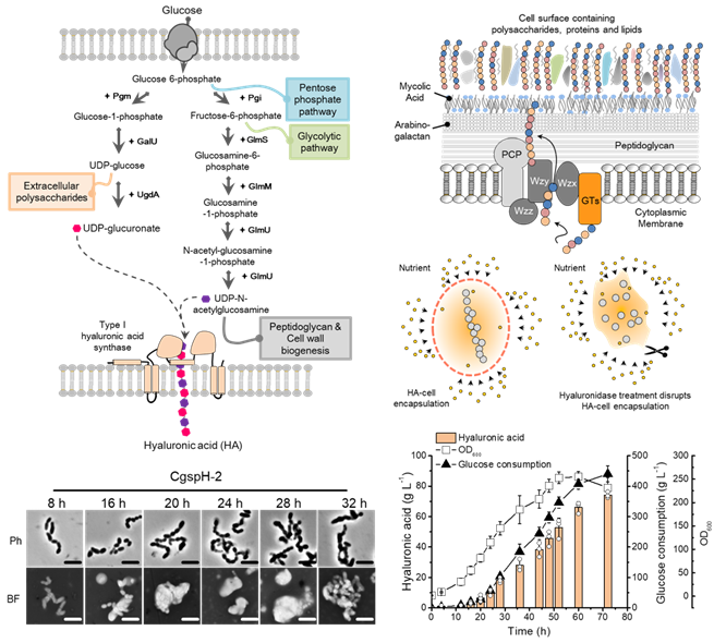 近期beat365官网beat365中文官网康振教授课题组在低分子量透明质酸的微生物发酵生产方面取得重要进展。研究成果“Eliminating the capsule-like layer to promote glucose uptake for hyaluronan production by engineered Corynebacterium glutamicum”于2020年6月19日在线发表在《Nature Communications》上。