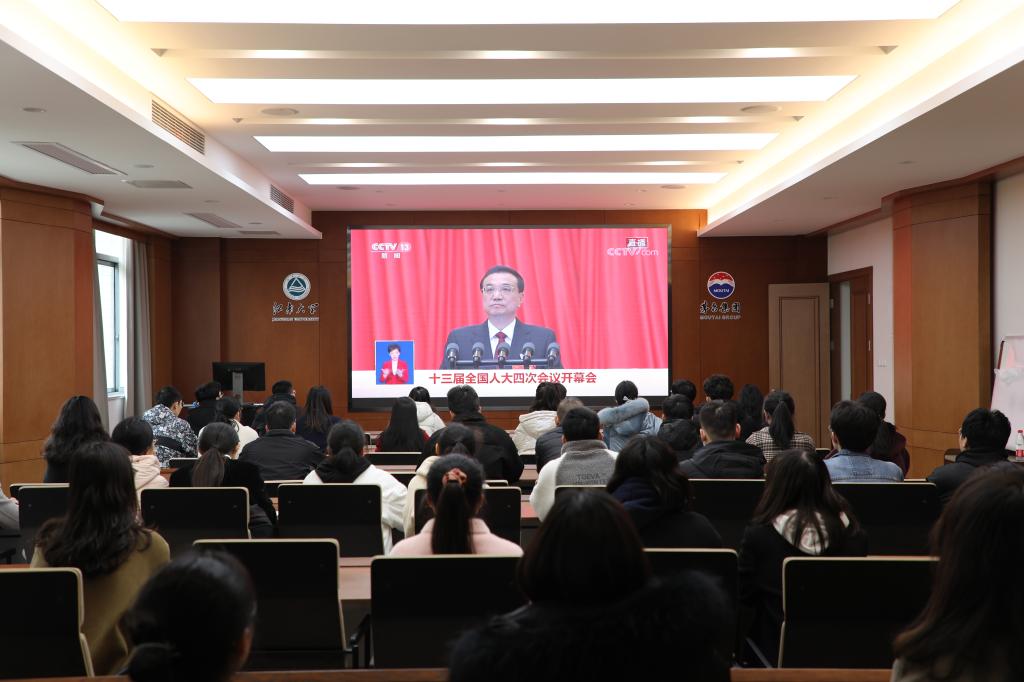 十三届全国人大四次会议、全国政协十三届四次会议分别于3月5日、4日在北京召开。本次两会是处于中国共产党成立100周年,“十四五”规划开局之年,开启全面建设社会主义现代化国家新征程、向第二个百年奋斗目标进军的重要历史交汇期,是谋大局、开新局的新征程。beat365中文官网组织师生通过线上线下收看开幕会直播,学习热议全国两会和政府工作报告,师生反响热烈,深感使命光荣、责任重大。